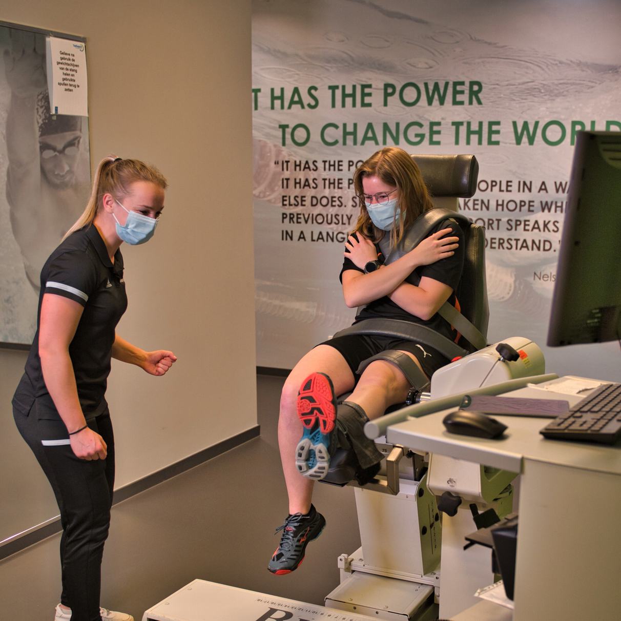 Na 9 maanden kreeg Maud bij Anna TopSupport een uitgebreide meting aangeboden om te kijken of haar knie voldoende hersteld is om volledig te gaan sporten en wedstrijden te spelen. Maud over de meting: ”Omdat ik geen tegenslagen heb gehad tijdens mijn revalidatie, had ik vertrouwen in de 9-maanden meting. Deze meting was nieuw voor mij en hield in dat ik een Biodex krachttest en verschillende sprongtesten moest doen om te kijken hoe de kracht en stabiliteitsverschillen zijn tussen mijn linker en rechter knie. Ik vond dit erg fijn, want hierdoor heb ik de bevestiging gekregen dat ik weer voldoende kracht en stabiliteit heb om weer veilig te kunnen gaan sporten en wedstrijden te spelen.”
